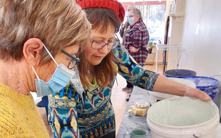 Tania Kunze is a talented artist in a range of mediums and teaches regularly from her studio Tatty K in Littlehampton, SA. With an advanced diploma in ceramics and time spent as a pottery teacher, Tania was the perfect fit to take our ceramics workshop in Pinnaroo. Her inspiration arises from the beauty she finds in nature, and her passion for creating pieces from clay is evident in her bubbly and inviting personality.