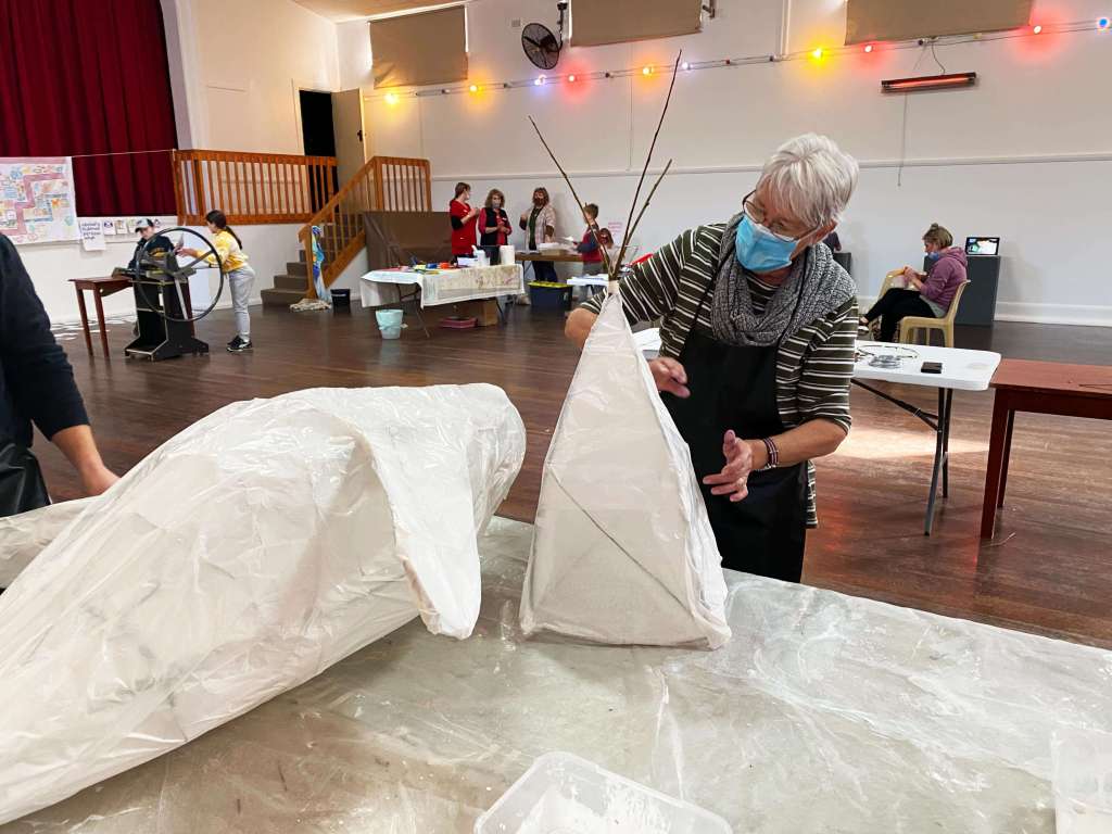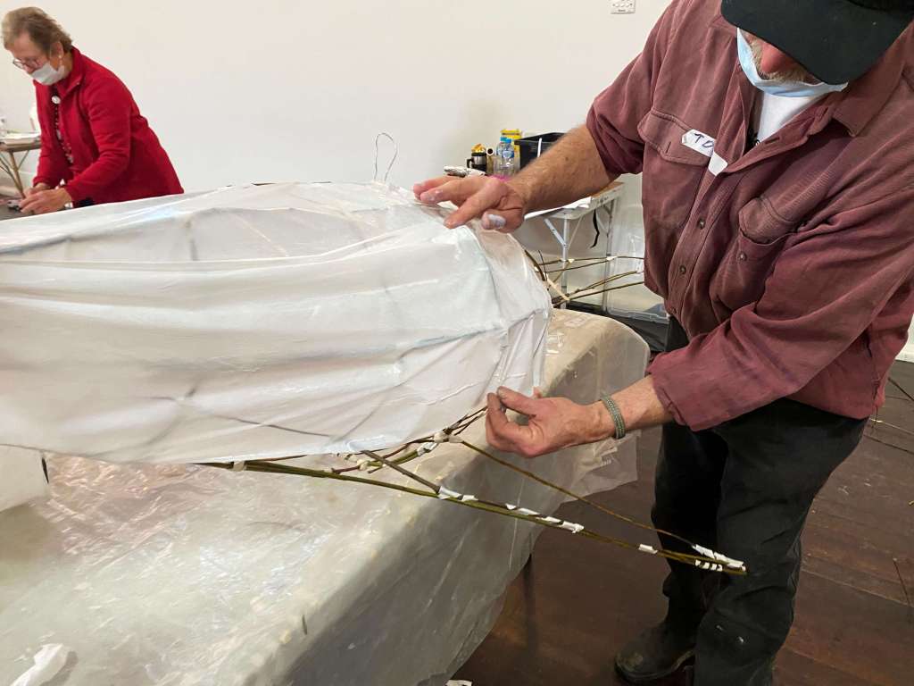 Tony Hannan brought with him a lot of glue, tape and willow sticks which, over only a couple of hours, were beautifully transformed into sharks, stars, whales and teepees! The process started with creating the outline and shape of the lantern by taping together pieces of willow branch. Once the overall shape was achieved and a candle set in place, greaseproof paper was dampened with a PVA glue and water concoction to create the lanterns outer layer.