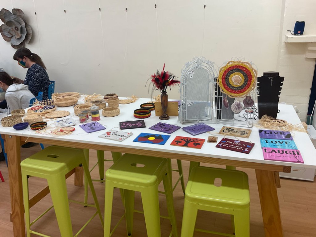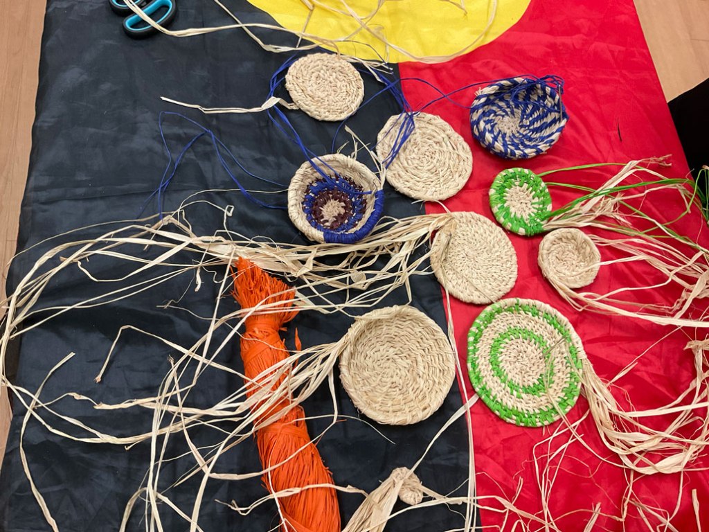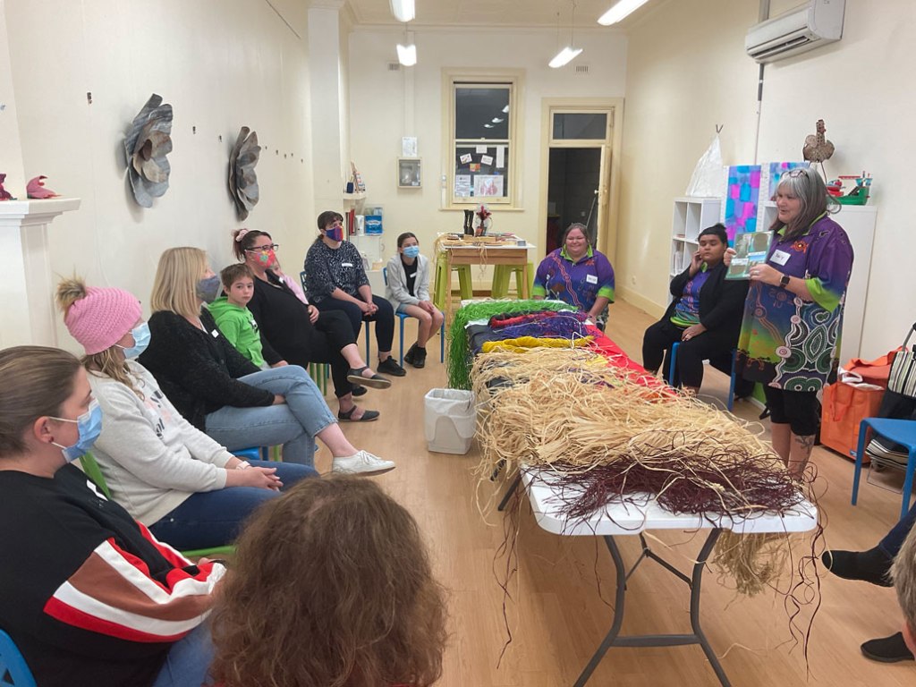 Boandik artists Sonya, Sarah & Suzy Smith shared their culture with us over relaxed, informative conversations. Weaving is part of aboriginal cultural traditions passed down from ancestors, and still practiced today. It was a pleasure to learn some of these traditional aboriginal weaving techniques and some lovely woven articles were created.